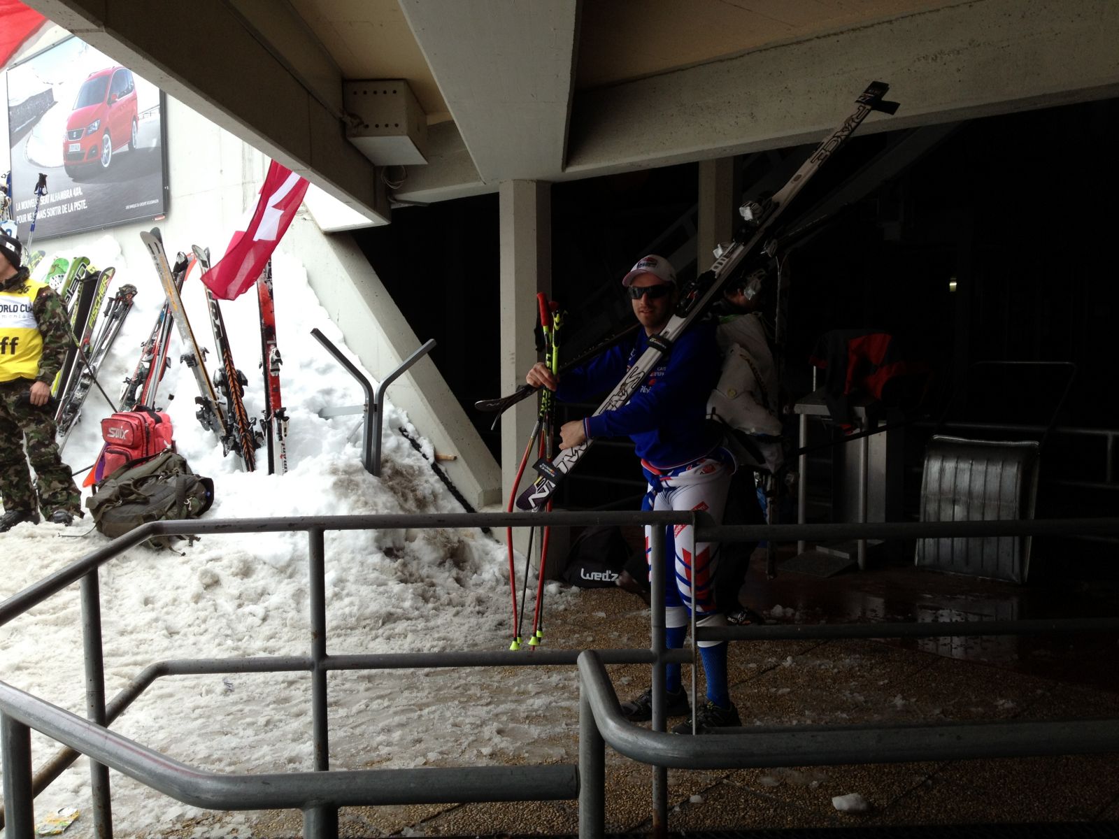 Language Undefined A trip to Switzerland today with a group of French clients to watch the FIS World Cup Mens Super G. Adrien Theaux delighted the French supporters by Finishing in 2nd place afrer a fantastic day on the Piste Nationale, Crans Montana! Hop France!!